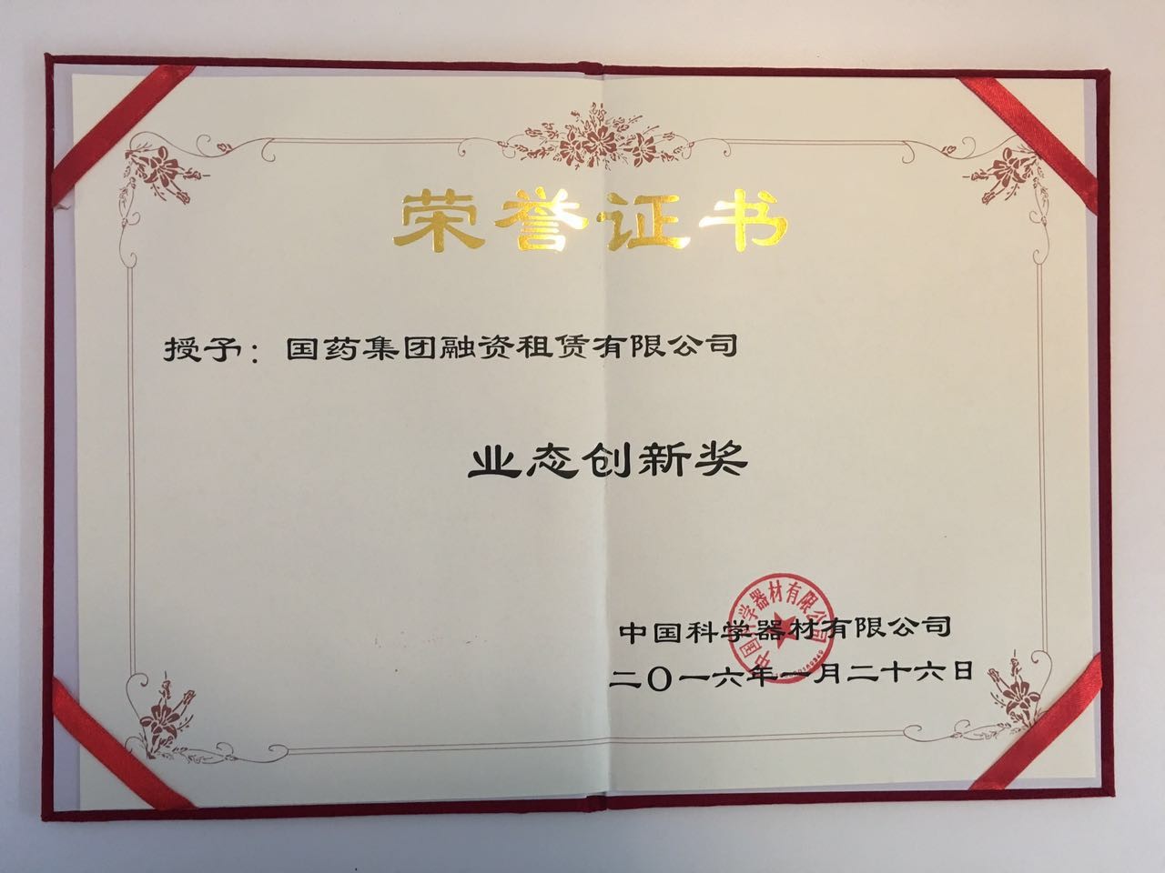 2016年1月26日,公司在中國科學器材有限公司2016工作會議上榮獲“2015業态創新獎”。