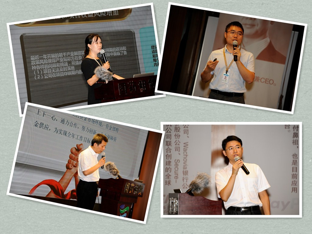 公司總裁王國梁做瞭主題爲“綠色金融”的重要講話。首先,王總對各部門做的分析報告給予瞭肯定的評價,從剛開始對産業的規律不是很清晰,到現在對報告一些新的指标提出、包括和其他企業的一些對比已經越來越準確、越來越有對照。其次,王總重點與大家分享瞭“綠色金融”的觀點,也爲大家闡述瞭“産融雙驅”的概念,並指出“産融雙驅”被稱爲現代企業競争非常有利的工具,其最高的形勢是股和債市場的結合,一級市場和一級半市場以及二級市場和債權市場的結合,是産融雙驅的高級模式。