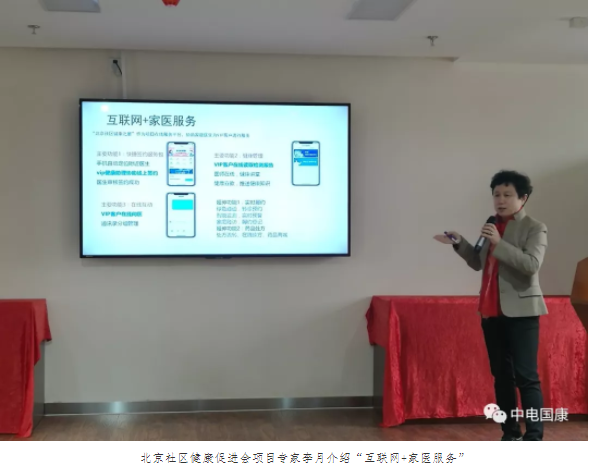 2018年11月26日,北京“家醫簽約健康e站”項目在門頭溝區正式啓動,北京市衛健委對參與項目的5家社區衛生服務機構進行授牌,促進家庭醫生簽約,爲門頭溝居民提供全方位全周期健康服務。出席會議的領導有:北京市衛健委基層衛生處主任朱文偉、北京社區健康促進會會長吳永浩、門頭溝區衛計委副主任楊立新、北京社區健康促進會項目專家組專家李月、門頭溝區社區衛生服務管理中心主任張廣強、中國人壽保險公司門頭溝支公司總經理劉春海、中電國康總監盧超。