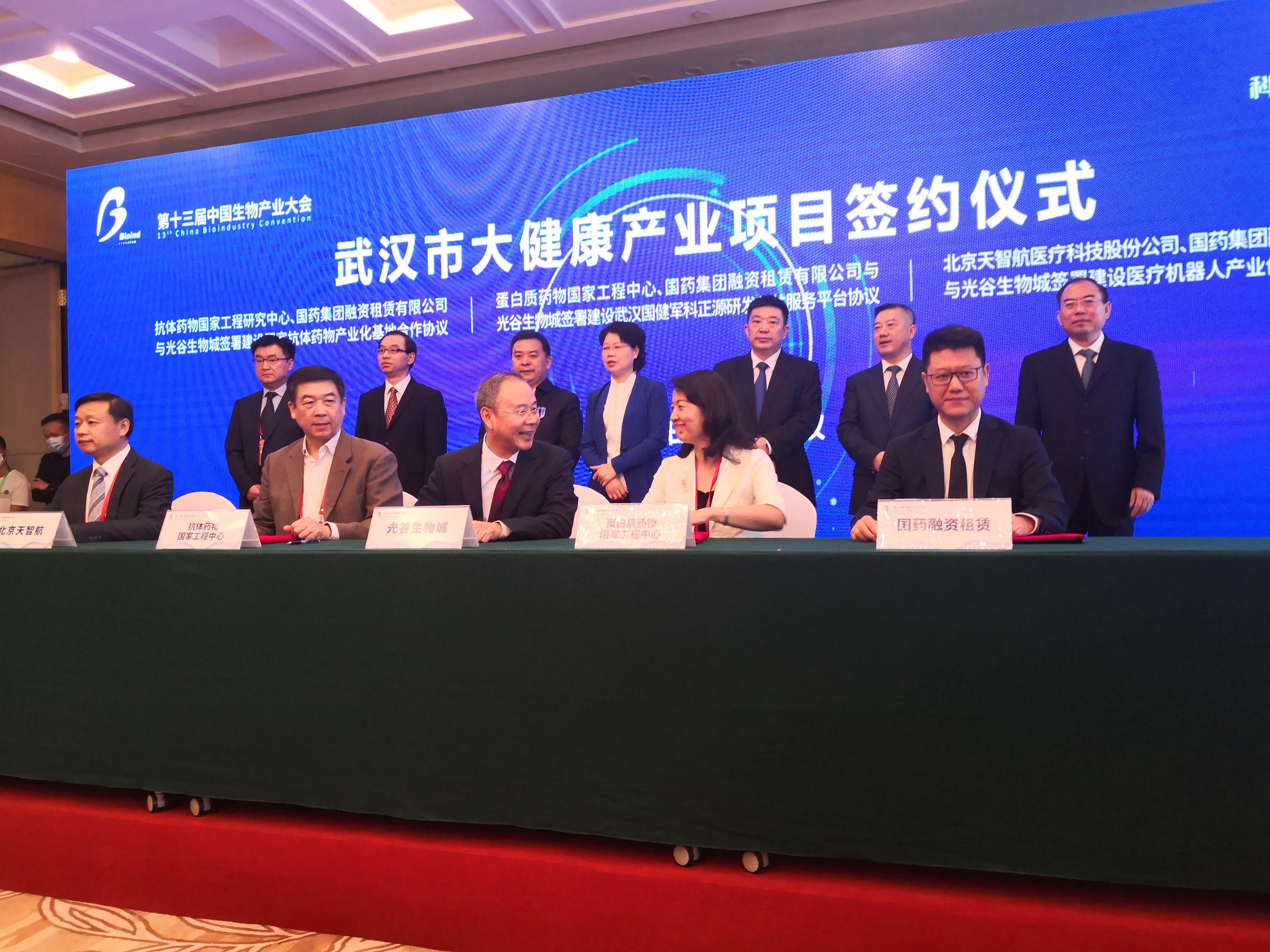 國藥租賃在本次大會上,協同瞭抗體藥物國家工程研究中心、蛋白質藥物國家工程中心、北京天智航醫療科技股份有限公司,共同與光谷生物城簽署意向協議,引導全國優勢醫療資源,助力光谷生物城生物醫藥健康産業的蓬勃發展。