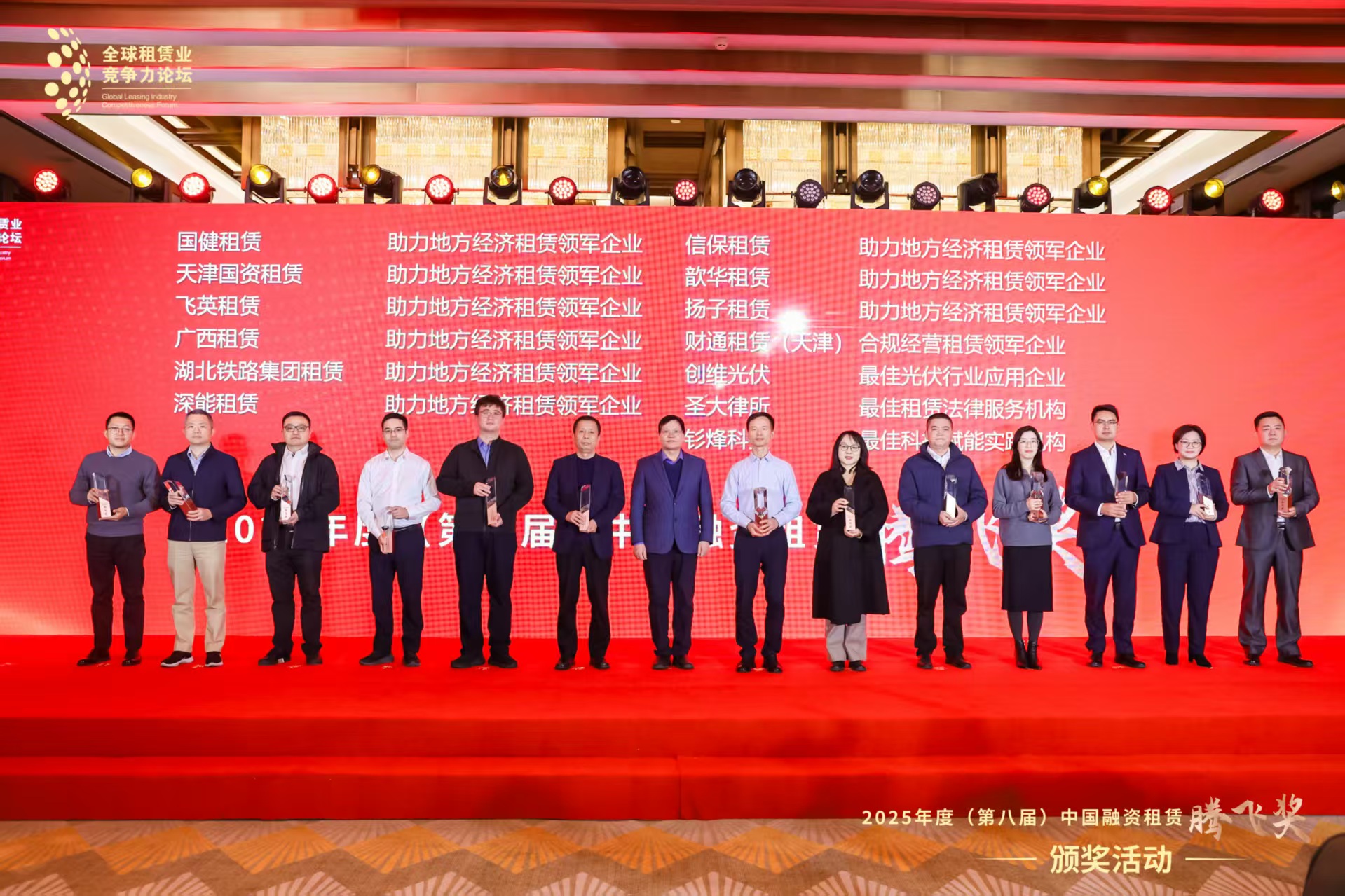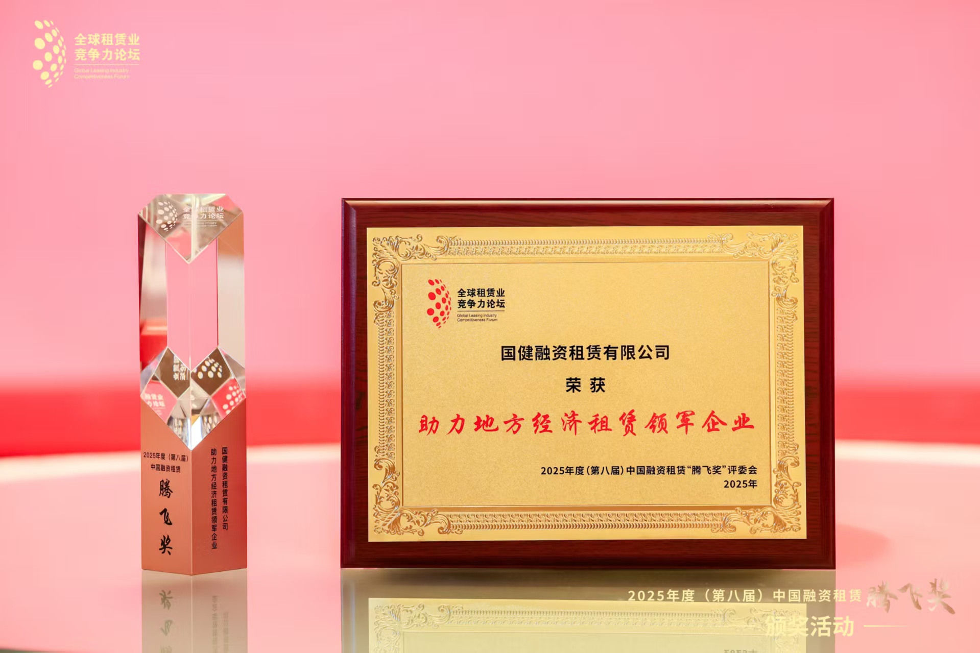 12月4-5日,2025(第十二屆)全球租賃業競争力論壇·年度峰會在津舉行。國健租賃受邀參會並榮獲2025年度(第八屆)中國融資租賃“騰飛獎”“助力地方經濟租賃領軍企業”獎。