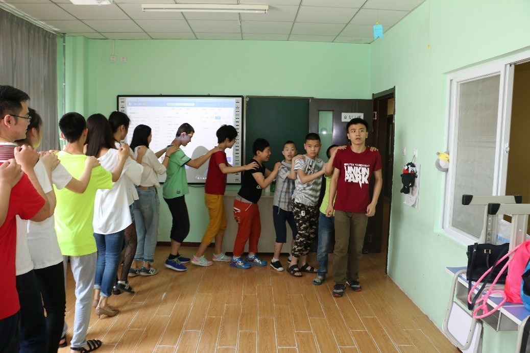 志願者又來到瞭孩子們的教室裏,孩子們正在學習拼圖、畫畫和文藝。志願者們也加入進來,一起唱兒歌、一起跳舞、一起開小火車……學習狀态下的自閉症兒童差異性會比較明顯,有的特别沉默,有的容易煩躁、注意力很難集中。但一旦進入音樂融合的狀态,絕大多數孩子便能夠變得專注,有的還會伴随音樂有節奏的動起來。
