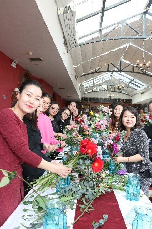 在七月香山這個充滿異域風情的地方,我們欣賞著優雅的巴伐利亞歌曲,聆聽花藝老師的講解,陶冶在花坊的詩情畫意中、品味其雅緻沁香的馥郁氣息。2個多小時的活動中,我們每位女神都在花藝老師的指導下,紮出瞭一束屬於自己的花束,也收獲瞭一份自己的浪漫。更爲驚喜的是,在活動臨近尾聲之時,王國梁總裁突然莅臨花坊,爲每位女同胞帶來瞭真摯的問候,並親手爲大家頒發瞭節日禮物,體現瞭公司對女同胞的關愛,同時王總也收到瞭全體女同胞的香花及真摯的感謝。