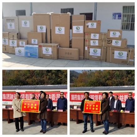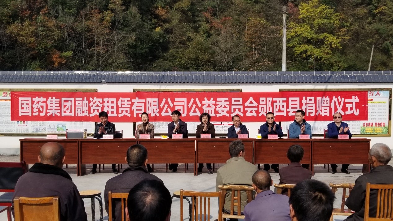 2020年11月11日,國藥集團融資租賃有限公司公益委員會,由陸海霞副總裁帶隊一行6人赴湖北省十堰市鄖西縣姬家坪村、平原村開展扶貧捐贈活動。縣委常委鄧超,縣委常委、副縣長黃進良出席本次捐贈活動。