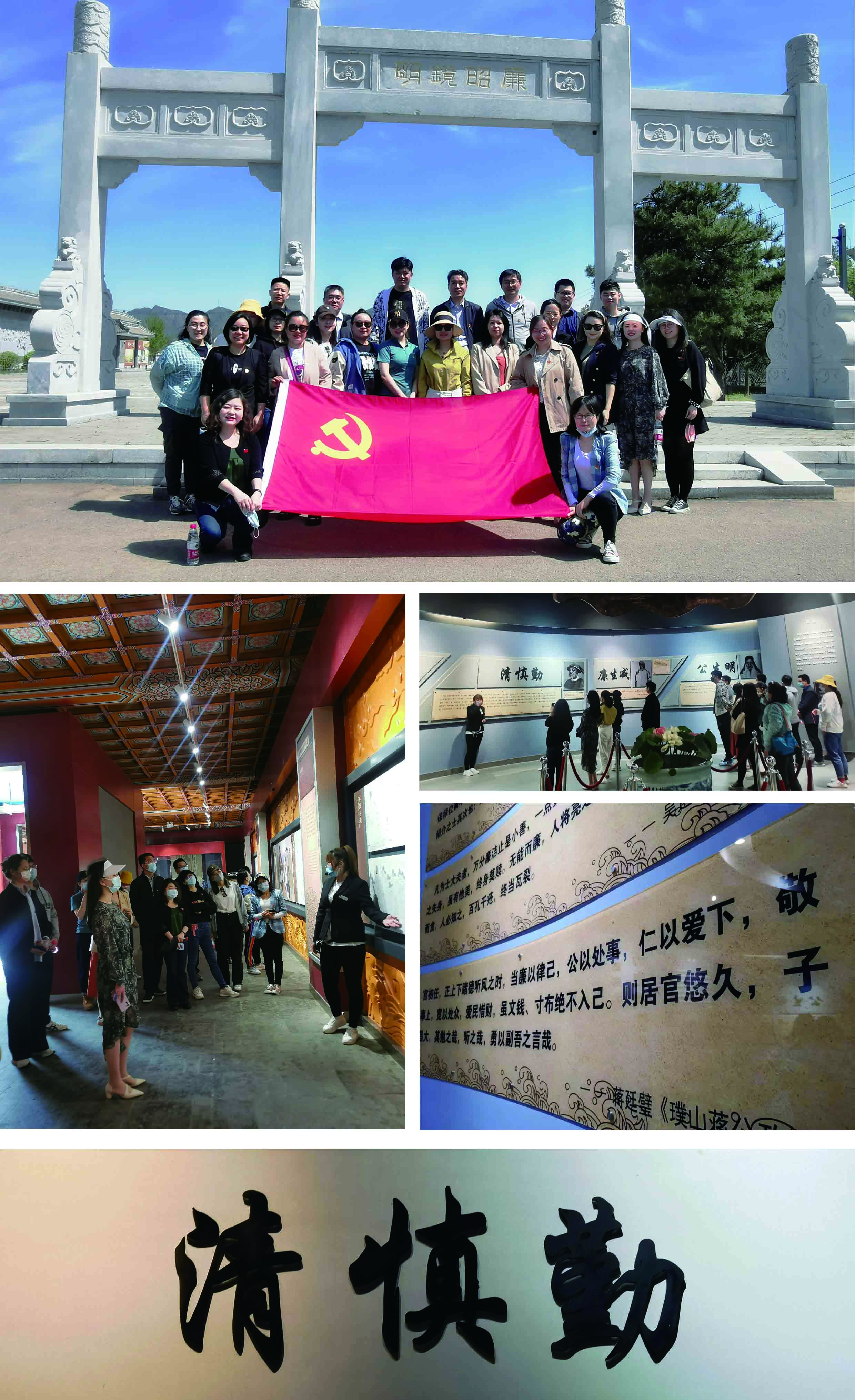 4月22日下午,黨支部組織黨員、團員、積極分子赴北京市廉政教育基地之“明鏡昭廉”明代反貪尚廉曆史文化園進行參觀學習。在講解員的引導下,一一觀看瞭明代反貪制度、明代反貪倡廉史事、明代的貪腐之風和曆史的警示四大部分。通過本次參觀學習,黨員們深受啓發,表示對黨内持續開展的黨風廉政建設和反腐工作的重要意義有瞭更加深刻的理解,表示在今後的工作中要不斷加強黨性修養和紀律規矩意識,以史爲鑒,幹幹淨淨做人,踏踏實實做事,做清正廉潔的共産黨員。