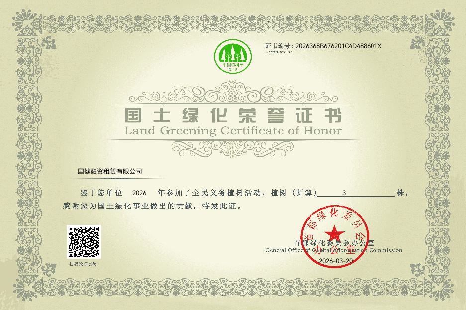 此次活動是國健融資租賃公司推進ESG綠色發展理念的生動實踐。未來,國健租賃公益委員會、國健租賃志願服務隊将聯動更多公益夥伴開展綠色環保公益及志願服務活動,讓綠色理念從“知”到“行”、從“企業”到“社會”,爲推動生态文明建設、構建人與自然和諧共生的美麗家園,貢獻國健租賃的堅實力量。