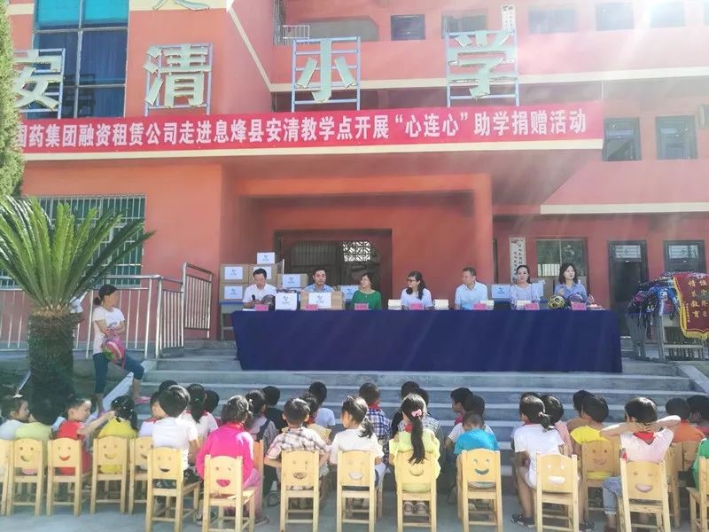2018年9月5日上午,國藥集團融資租賃有限公司由趙星副總裁、陸海霞副總裁帶隊一行5人赴貴州省息烽縣溫泉鎮安清小學開展助學捐贈活動。