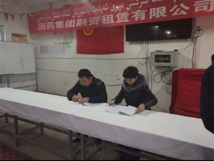 2017年12月17日至18日,國藥租賃副總裁陸海霞、副總裁賀志向一行赴新疆喀什地區,代表公司與巴楚縣衛生局簽訂瞭捐贈協議,在該縣轄内闊納巴紮村和協開爾巴格村衛生室揭牌儀式上,捐贈瞭一批藥品和醫療器械。
